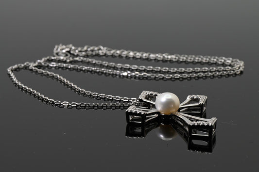 Freshwater Pearl, Cross Necklace, S930 Silver, Christian Necklace, For Baptism, First Communion, Mother's Day and Christmas Jewelry Gifts