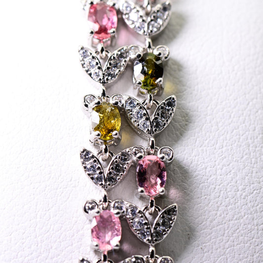 Natural Tourmaline Bracelet, Rainbow Color, S925 Sterling Silver, Birthday Gift, Mother’s Day Gift, Anniversary Gift, Christmas Gift for her
