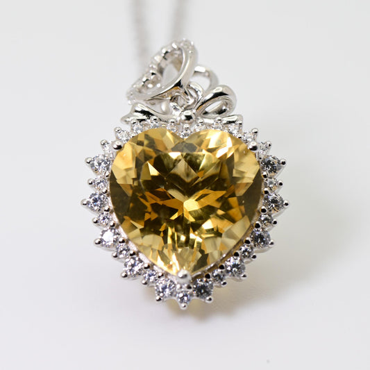 Natural Citrine, Heart Pendant, Crystal Yellow Color, S925 Sterling Silver, Birthday Gift, Mother’s Day Gift, Anniversary, Xmas Gift for her